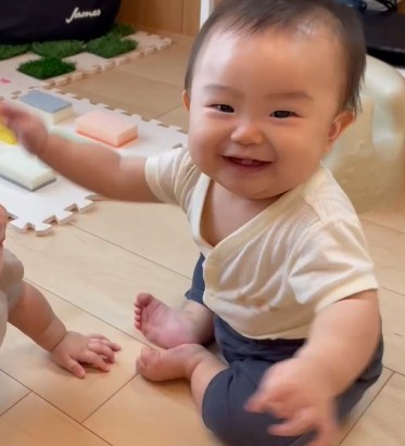 ばっちり目が合っていますね。 もうお友だちになりましたね。
