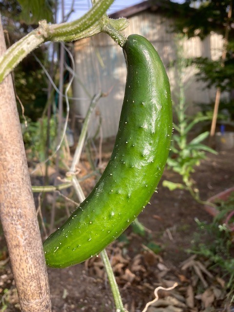 釧路の露地で こんなに寒くなって 結実したきゅうりに お目にかかるとは 思いませんでした。