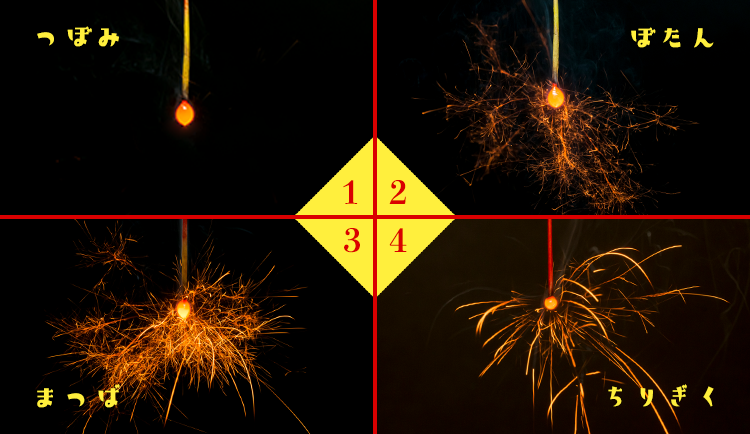 蕾は、 線香花火の4変化の『はじまり』の 部分にあたります。