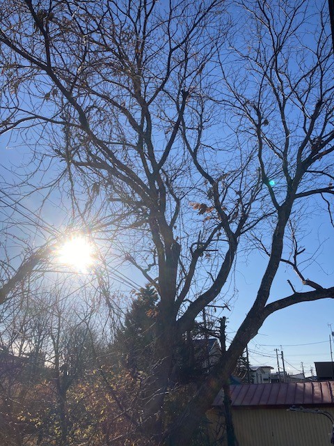 2025.11.9 わが家の大きな栗の木の葉が だいぶ散りました。 今年の秋は おそらく1000個以上の実をつけて 多くの方々に分かち合うことができ 本当にお疲れ様と言う 他ありません。