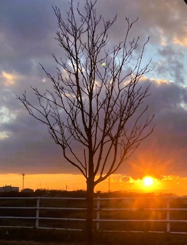 今年の栗は豊作でした。 ご近所さんにも 分かち合うことができて 感謝でした。 お疲れさまでした!と 朝陽も、栗の木をねぎらっているかのよう