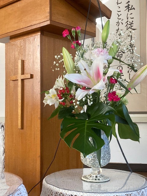 私は、今朝 教会堂で 美しく活けられた お花たちに 「かわいいね」「きれいだね」 とお声をかけさせていただきました。