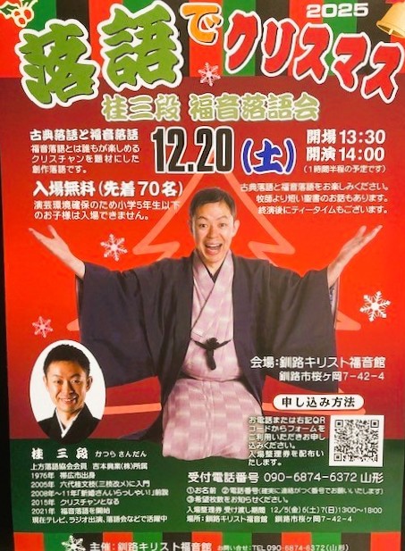 私どもの教会の今年の クリスマスイベントの一つ 「落語でクリスマス」 教会で 聖なる笑いを 堪能されませんか!