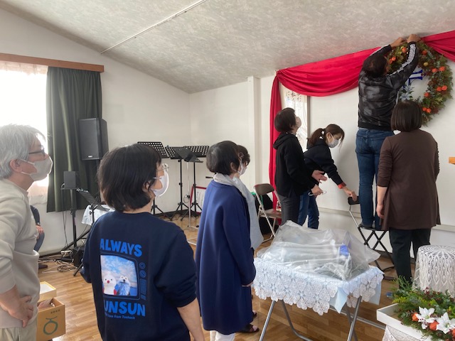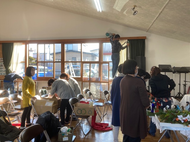 2025.11.23 日曜礼拝後の昼下がり 年末大掃除と クリスマスの飾り付けが 行われました。