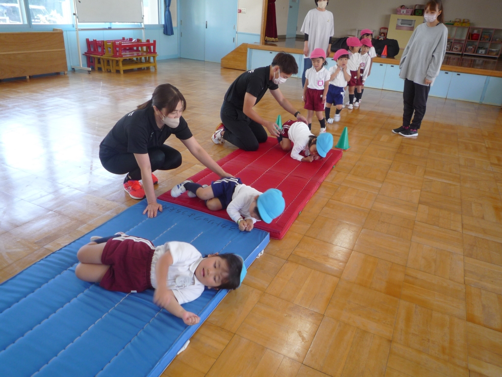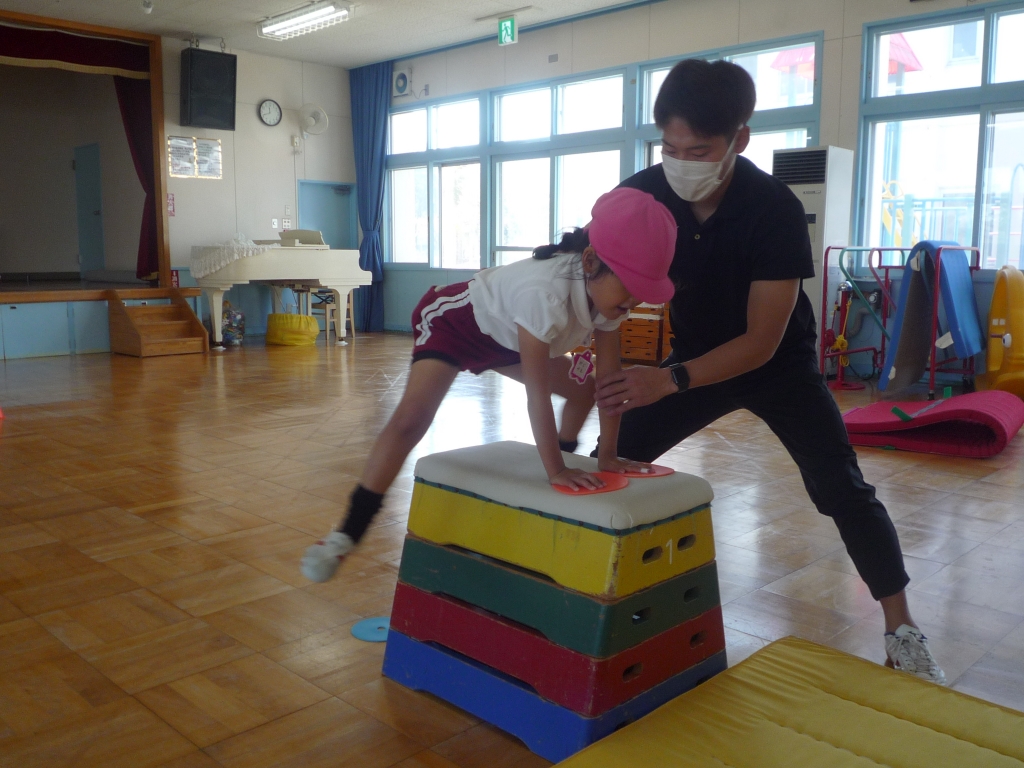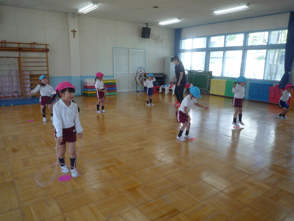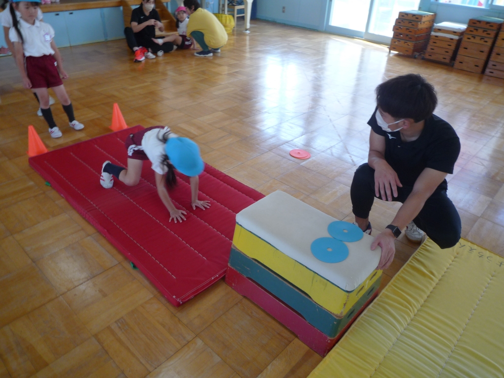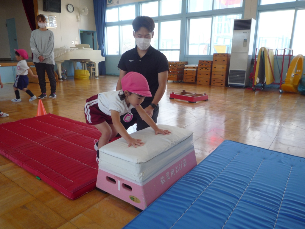 今日はオカモトスポーツでした☆Aくみは跳び箱・Bくみは縄跳び・Cくみは跳び箱とマットでした。合間には折り紙製作もしました。