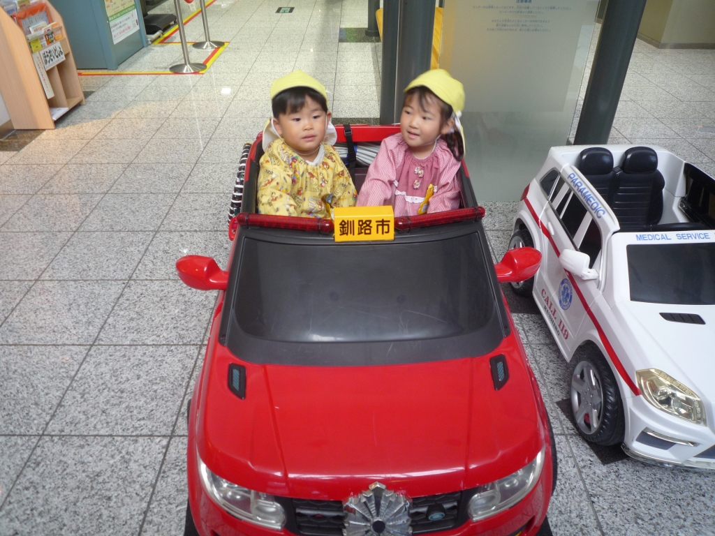 今日は耐震岸壁に入港していたクルーズ客船飛鳥?をに見に行きました。耐震岸壁に到着すると「うわぁ〜、大きいマンションみたい!」と大喜びの子どもたち!客船の中から乗務員の方やコックさんが手を振ってくれて「こんにちは〜」と元気にご挨拶も出来ました☺釧路市のゆるキャラのつるまるにも会い、写真を撮ってもらうことができました☆