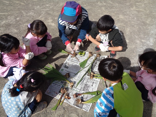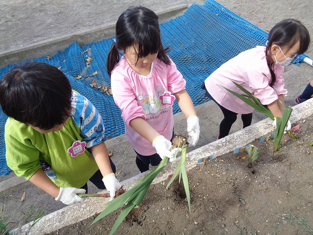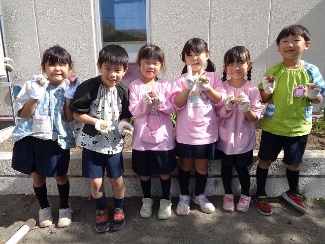 今日A組さんは、花壇からグラジオラスの球根を掘り出しました!