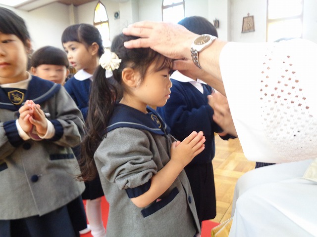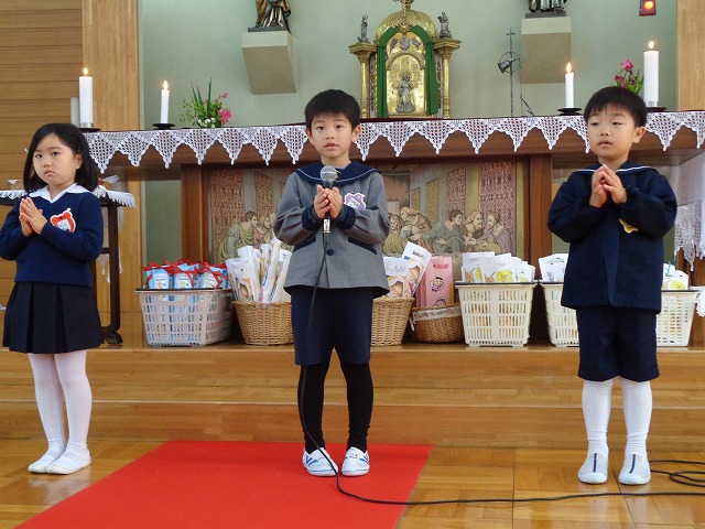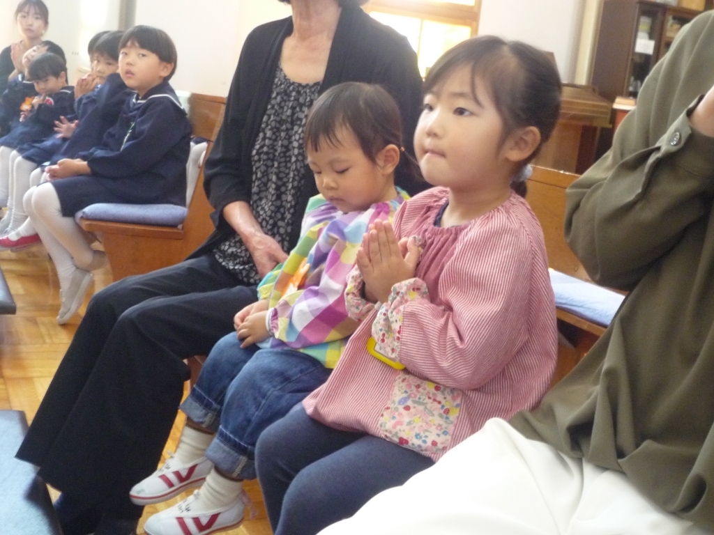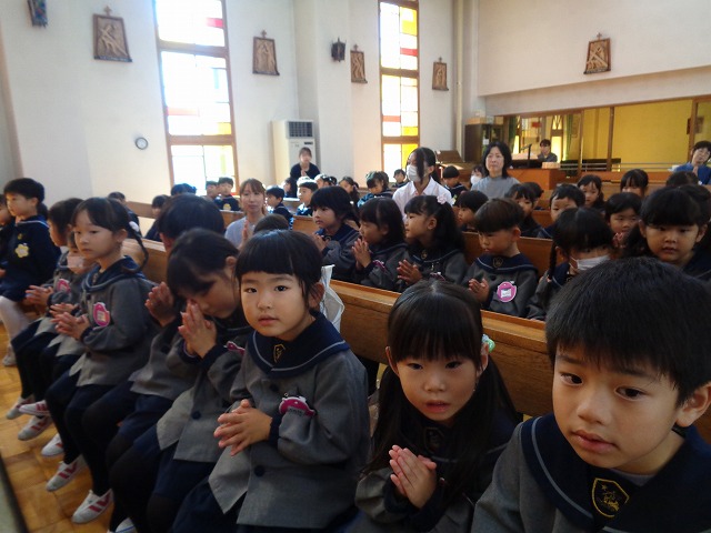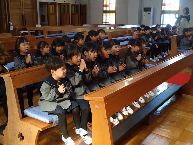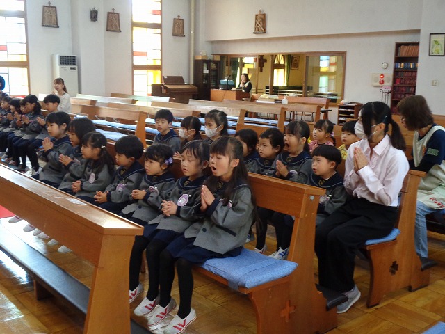 9日(木)は七五三礼拝会です。初めてお聖堂に行ったお友だちもいましたが、泣かずにお祈りをしてくることが出来ました。神父様が1人1人に祝福をくださいました。これからも元気に大きくなれますように。