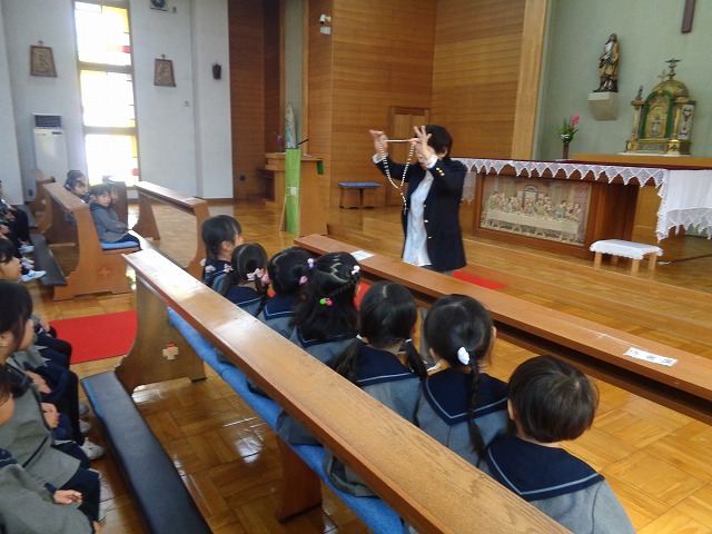 10月は、ロザリオの月🌹 園長先生に、実際にロザリオを見せていただき「ロザリオとは何かな?」と教えていただきましたよ✨