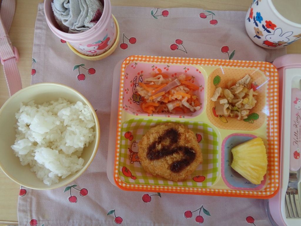 新しい1週間が始まりました。今日もお遊戯会練習を頑張りました!!給食はチキンカツ・切り干し大根ベーコンの炒め物・白菜と揚げの煮浸し・パイナップル・ご飯でした。お遊戯練習でペコペコな子どもたちはおかわりモリモリでした(^^)/